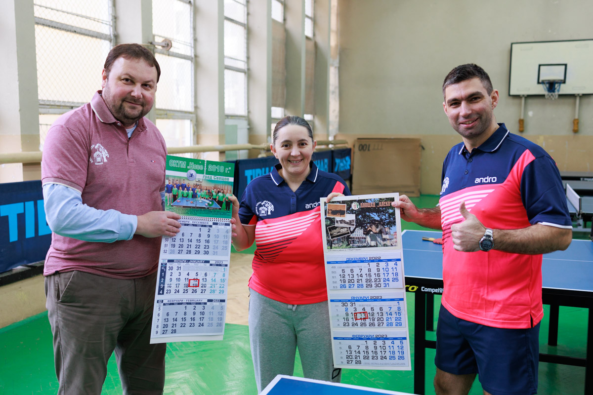 Нови екипи за децата, трениращи тенис на маса в ССКТМ „Нове – 2018” получиха те от представителите на гражданското ни сдружение. В присъствието на техните треньори Мирослава Колева и Иван Александров малките бъдещи шампиони получиха своите подаръци, а нашето сдружение ги зарадва и с по един от традиционните ни календари.