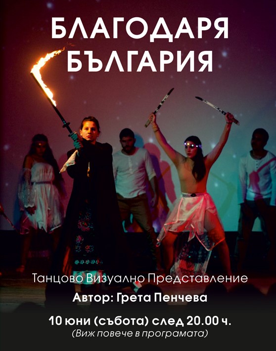 Гостите на фестивала ще имат възможност да се радват и на зрелищния танцов и аудиовизуален спектакъл „Благодаря, България!“, дело на хореографа Грета Пенчева, включващ представление, което обединява прожекция, компютърна визуализация, музика. Той ще разкаже приказката за Майката Земя и България. „Площад Алеко” е медиен партньор на събитието и с усилията на доброволците на сдружението ще подпомогне организаторите.